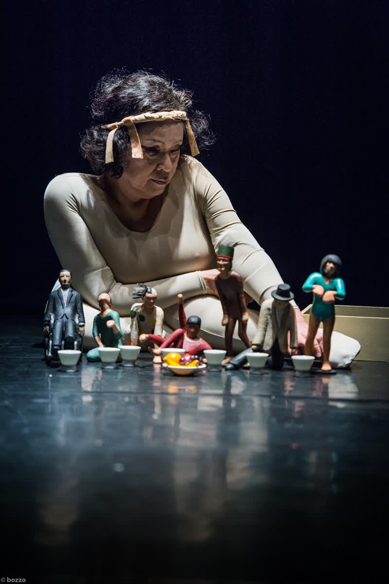 7体のかつてのパフォーマーたちを舞台上に並べ、その死と共に今が在ることを宣言し、