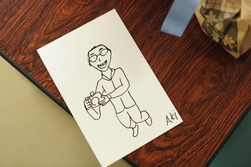 会場でAKIさんが描いた、カメラを持つbozzo。