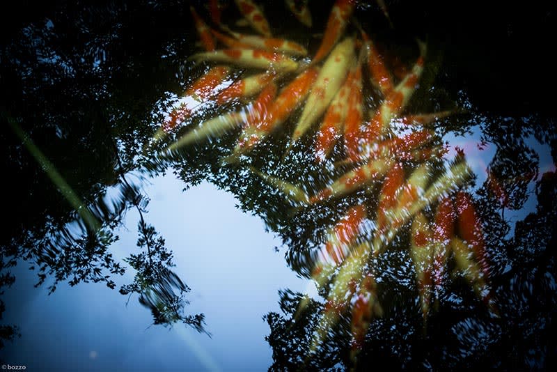 七福神を祀る池には錦鯉が。