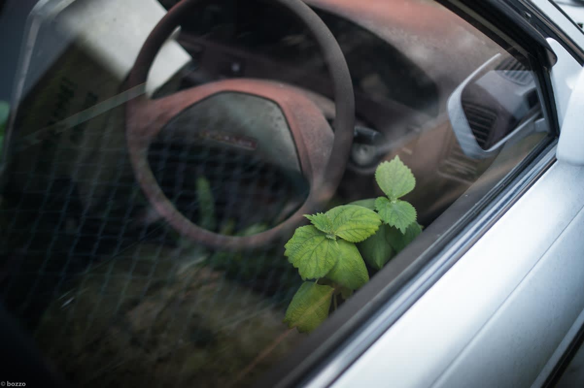 草が成っている廃車を見つけた。
