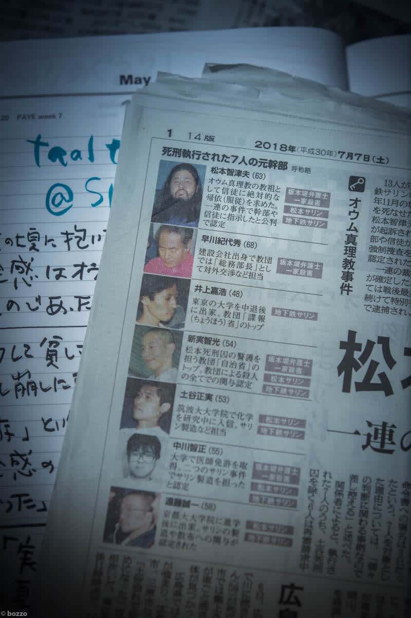 7月7日に「7人執行」の見出し。