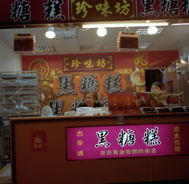 台湾美人の売り子が分け入る。