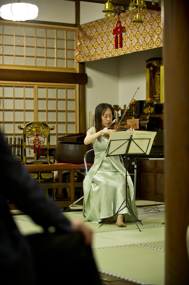 お寺の仏様の前で披露された。