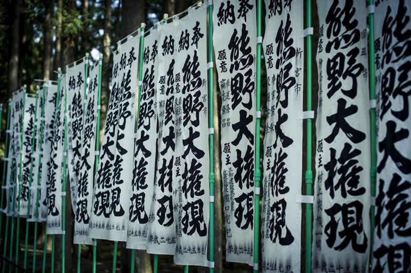 熊野ではサカキとなる梛が、献花といっしょに供えられる。