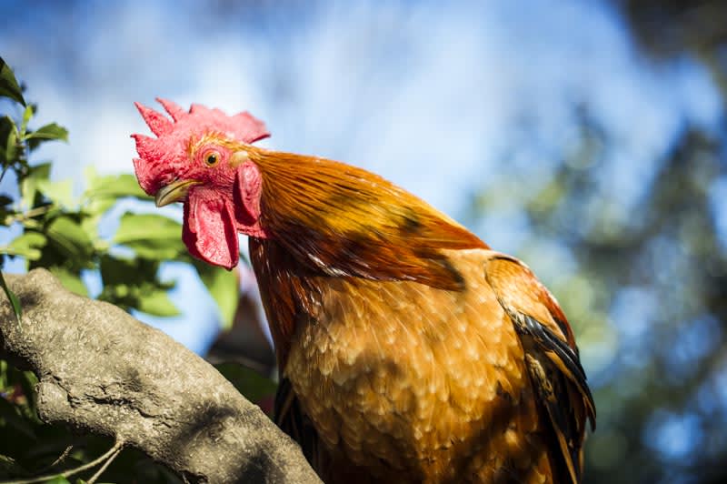 国立は谷保天満宮にて木登り鶏に迫られる。