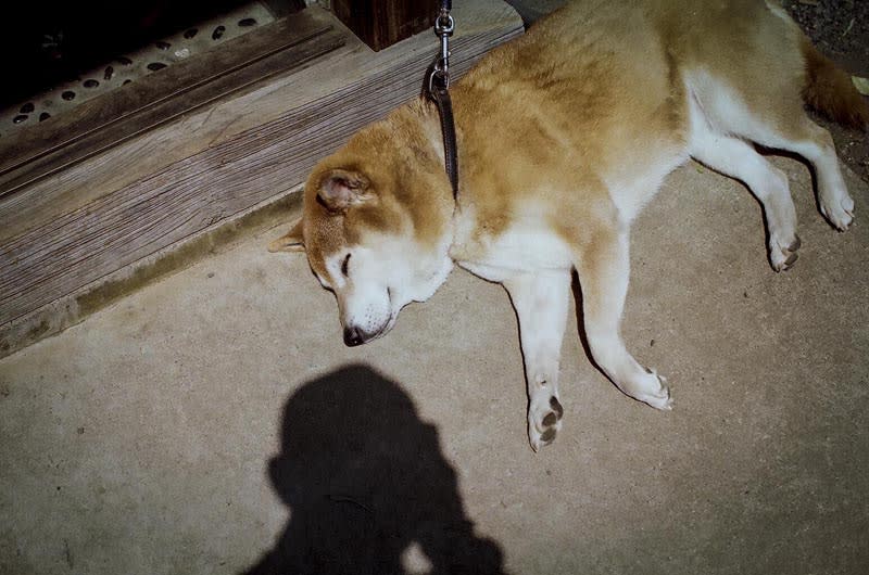 写真は「やまもりカフェ」にて、営業部長のポロ。仕事せず、寝てます。