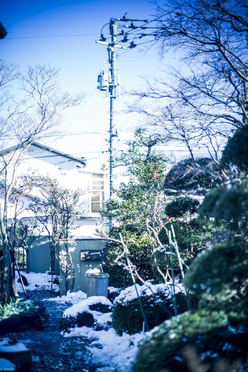 雪の中、momoの散歩も終わりに近づき、