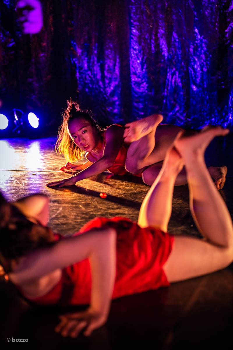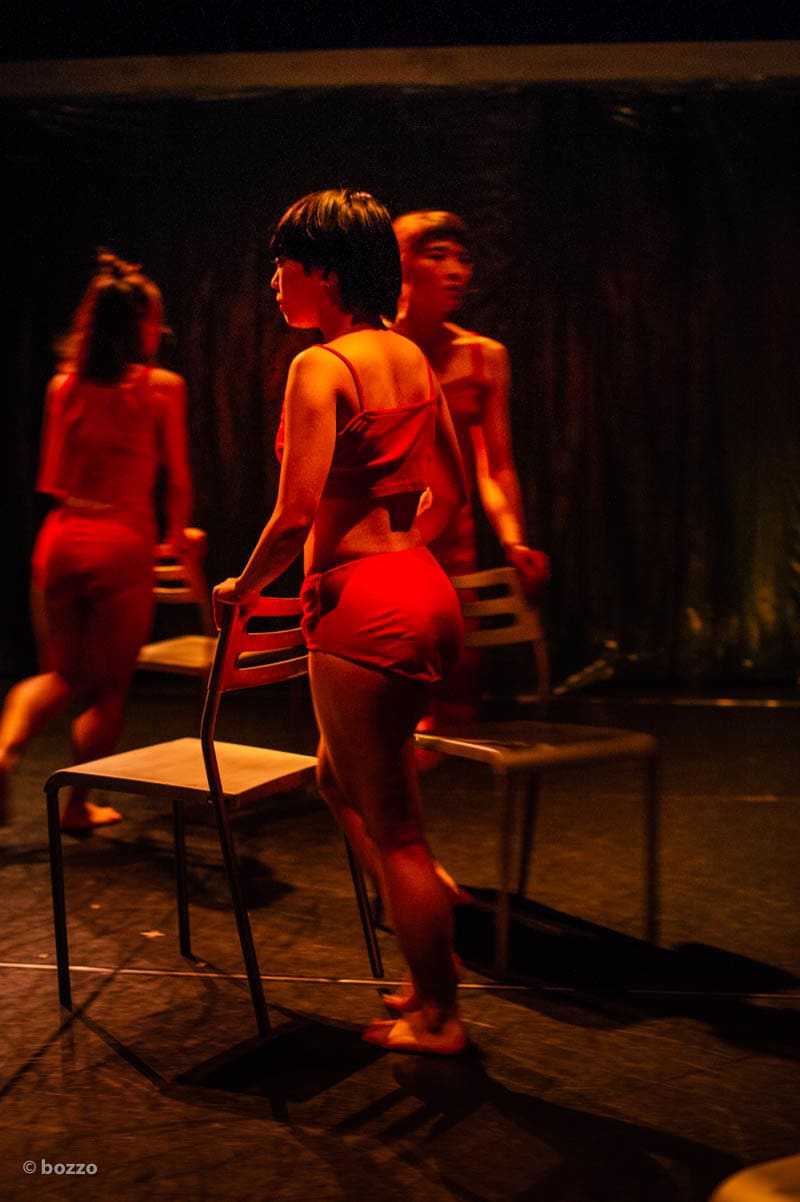 四角い飼育箱で踊りまぐわうダンサーたち。